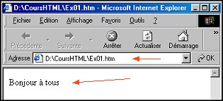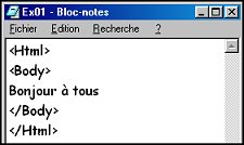 Body est le corps de votre page, et /Body en détermine le fin. C'est entre Body et /Body que vous construiser votre page Web. Voici un petit exemple qui vous dit Bonjour à tous