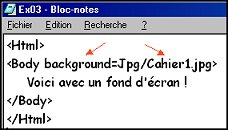 Vous remarquerez que pour l'image, il faut mettre le chemin exact pour pouvoir la retrouver.