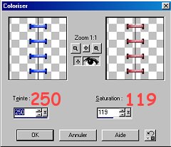 Faire Couleur/Coloriser, avec les configurations suivantes.