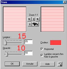Largeur = 5 / Opacité = 10 / Couleur = Blanc / Horizontal coché / Lumière gauche coché.