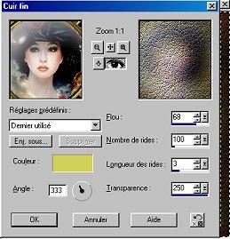 | #11 : Faire Effets / Effets de Texture / Cuir Fin, réglé comme ceci : | |