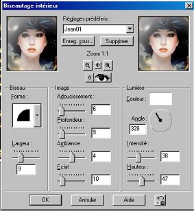 | #07 : Faire un Effets / Effets 3D / Biseautage intèrieur réglé comme ceci : | |