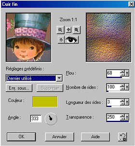 #27 : Faire "Effets/Effets de Texture/Cuit Fin" réglé comme ceci.