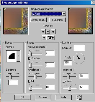 #28 : Faire "Effets/Effets 3D/Biseautage intèrieur" réglé comme ceci.